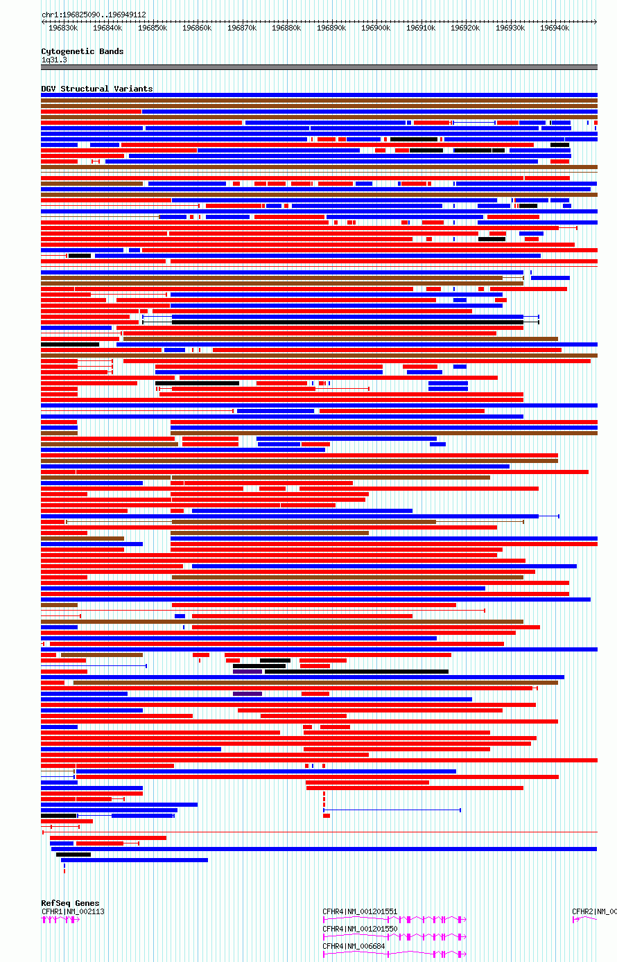 | | Variant Type | CNV deletion | | Copy Number | | | Allele State | | | Allele Origin | | | Probe Count | | | Validation Flag | | | Merged Status | S | | Merged Variants | esv2721040 | | Supporting Variants | | | Samples | SSM052 | | Known Genes | CFHR1, CFHR2, CFHR4 | | Method | Sequencing | | Analysis | Breakdancer:4 times standard deviation,VariationHunter:4 times standard deviation and at least 3 supportting reads | | Platform | Illumina HiSeq 2000 | | Comments | | | Reference | Wong_et_al_2012b | | Pubmed ID | 23290073 | | Accession Number(s) | essv6738952