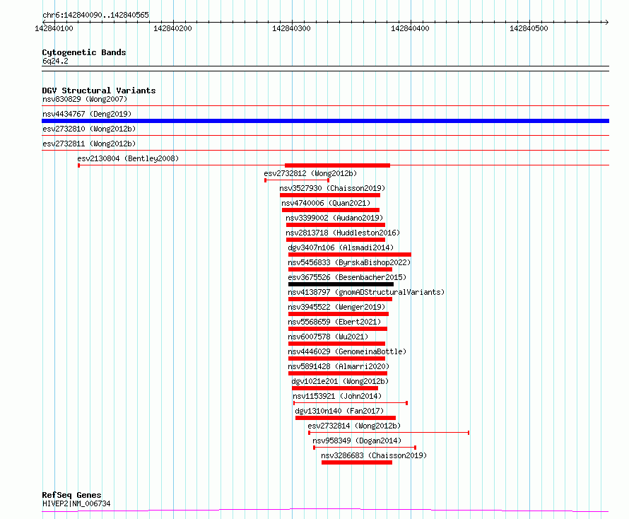 Variant DetailsVariant: essv6740069| Internal ID | 10149729 | | Landmark | | | Location Information | | | Cytoband | 6q24.2 | | Allele length | | Assembly | Allele length | | hg38 | 476 | | hg19 | 476 |