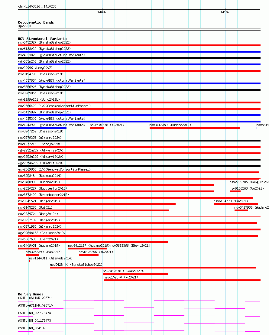 Variant DetailsVariant: essv6740370| Internal ID | 10149457 | | Landmark | | | Location Information | | | Cytoband | Xp22.33 | | Allele length | | Assembly | Allele length | | hg38 | 1968 | | hg19 | 1968 |
