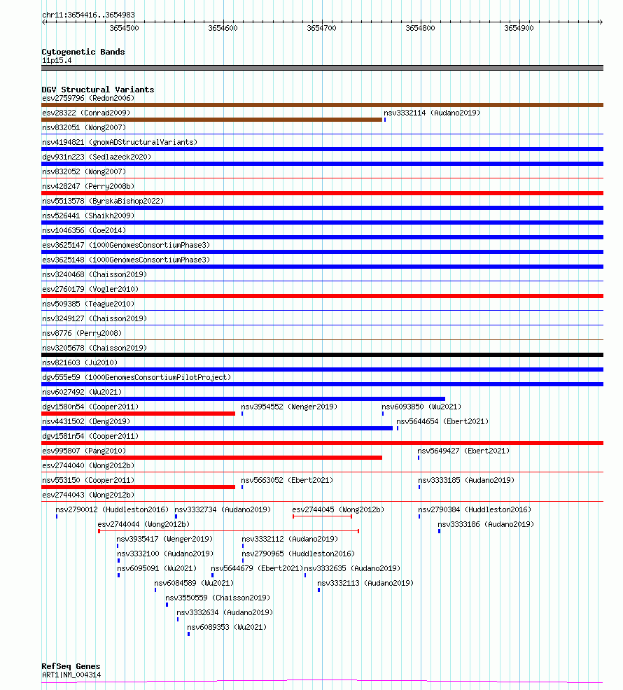 Variant DetailsVariant: essv6740901| Internal ID | 10148981 | | Landmark | | | Location Information | | | Cytoband | 11p15.4 | | Allele length | | Assembly | Allele length | | hg38 | 568 | | hg19 | 568 |