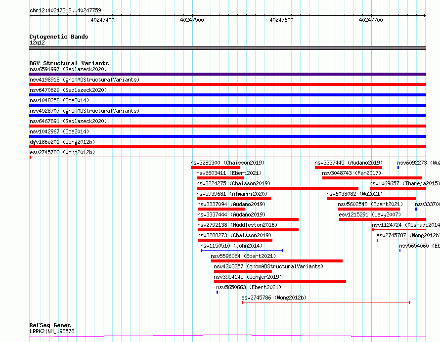 | | Variant Type | CNV deletion | | Copy Number | | | Allele State | | | Allele Origin | | | Probe Count | | | Validation Flag | | | Merged Status | S | | Merged Variants | esv2745782, esv2745783 | | Supporting Variants | | | Samples | SSM052 | | Known Genes | LRRK2 | | Method | Sequencing | | Analysis | Breakdancer:4 times standard deviation,VariationHunter:4 times standard deviation and at least 3 supportting reads | | Platform | Illumina HiSeq 2000 | | Comments | | | Reference | Wong_et_al_2012b | | Pubmed ID | 23290073 | | Accession Number(s) | essv6741075