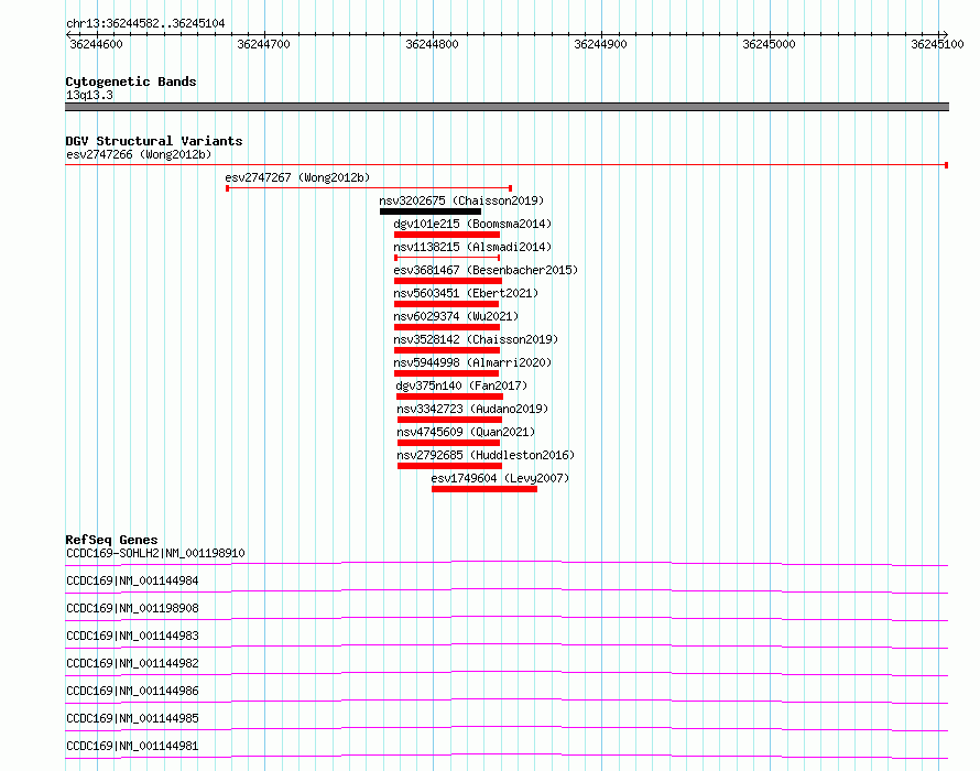 Variant DetailsVariant: essv6741196| Internal ID | 10148715 | | Landmark | | | Location Information | | | Cytoband | 13q13.3 | | Allele length | | Assembly | Allele length | | hg38 | 523 | | hg19 | 523 |