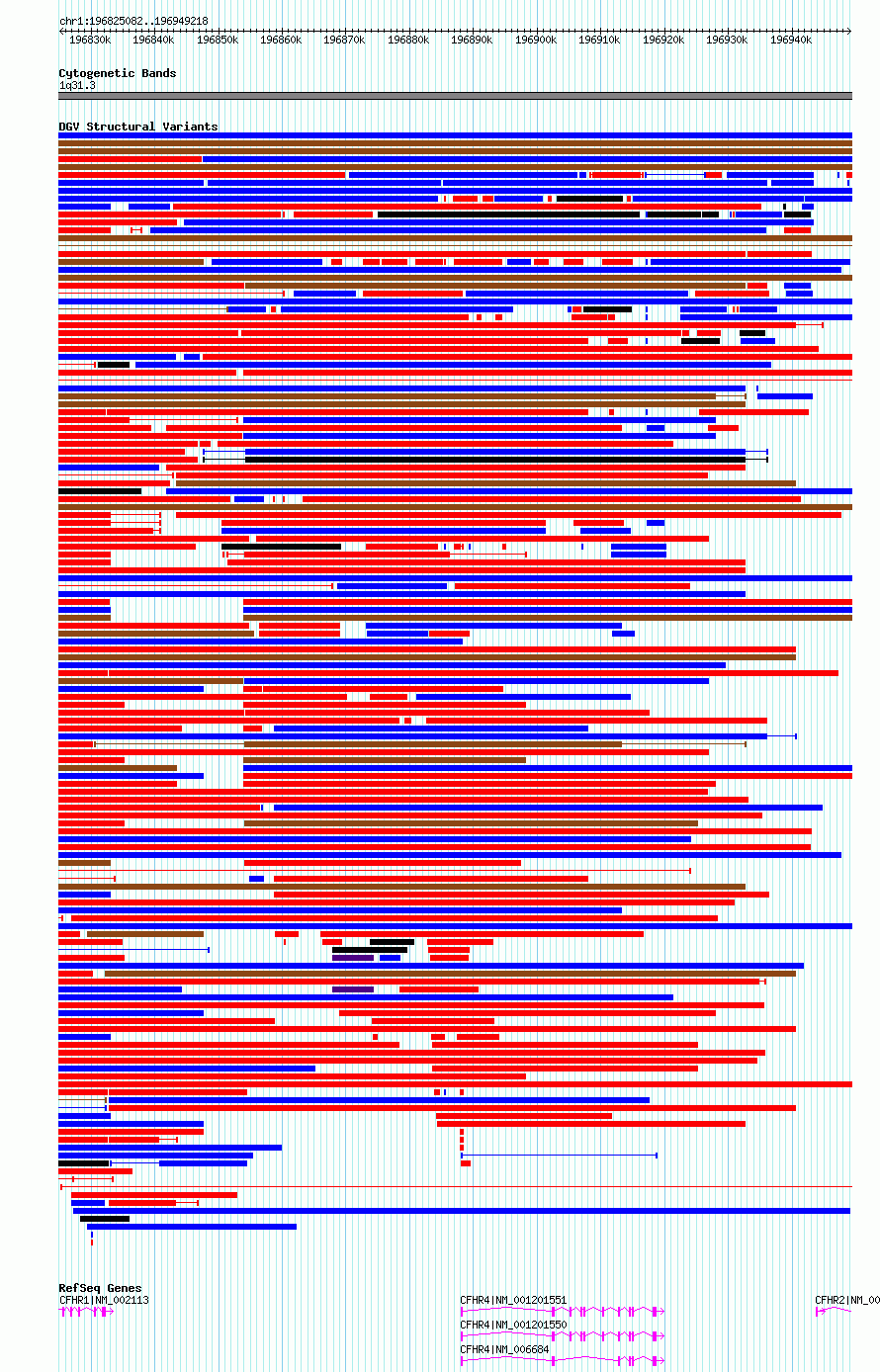 | | Variant Type | CNV deletion | | Copy Number | | | Allele State | | | Allele Origin | | | Probe Count | | | Validation Flag | | | Merged Status | S | | Merged Variants | esv2721040 | | Supporting Variants | | | Samples | SSM053 | | Known Genes | CFHR1, CFHR2, CFHR4 | | Method | Sequencing | | Analysis | Breakdancer:4 times standard deviation,VariationHunter:4 times standard deviation and at least 3 supportting reads | | Platform | Illumina HiSeq 2000 | | Comments | | | Reference | Wong_et_al_2012b | | Pubmed ID | 23290073 | | Accession Number(s) | essv6742263