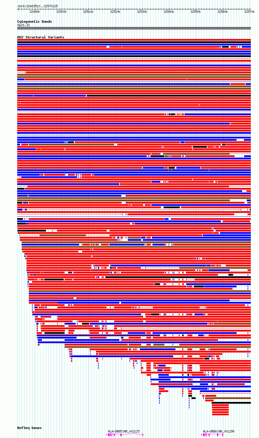 Variant DetailsVariant: essv6743130| Internal ID | 10153876 | | Landmark | | | Location Information | | | Cytoband | 6p21.32 | | Allele length | | Assembly | Allele length | | hg38 | 86716 | | hg19 | 86716 |