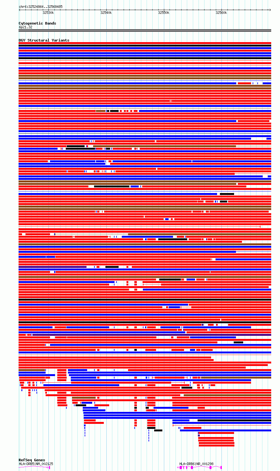 Variant DetailsVariant: essv6743135| Internal ID | 10153872 | | Landmark | | | Location Information | | | Cytoband | 6p21.32 | | Allele length | | Assembly | Allele length | | hg38 | 43622 | | hg19 | 43622 |