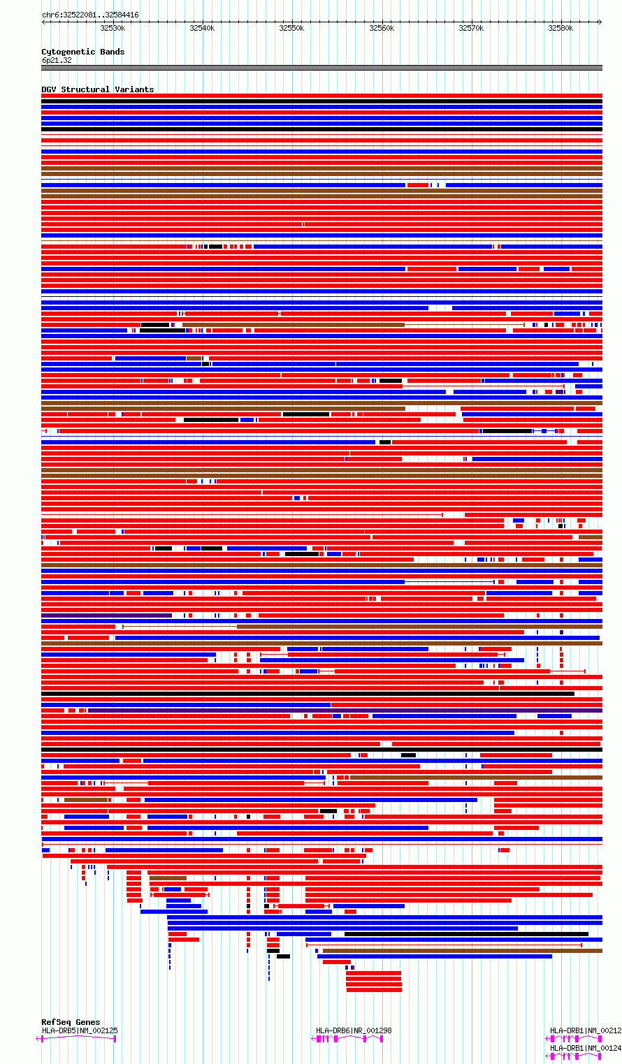 Variant DetailsVariant: essv6743147| Internal ID | 10153861 | | Landmark | | | Location Information | | | Cytoband | 6p21.32 | | Allele length | | Assembly | Allele length | | hg38 | 62336 | | hg19 | 62336 |