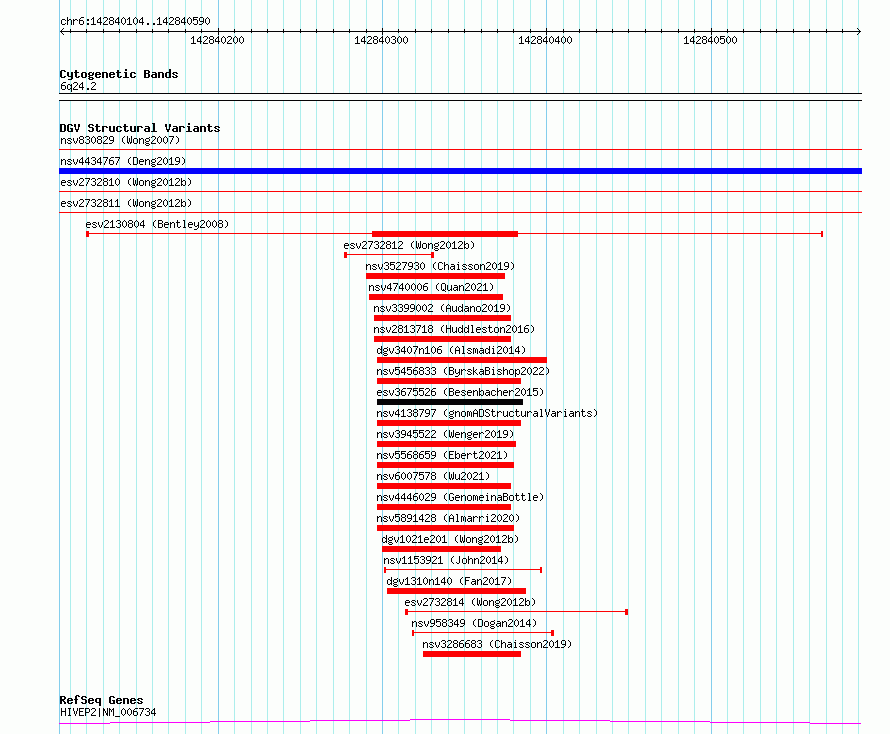 Variant DetailsVariant: essv6743252| Internal ID | 10153766 | | Landmark | | | Location Information | | | Cytoband | 6q24.2 | | Allele length | | Assembly | Allele length | | hg38 | 487 | | hg19 | 487 |
