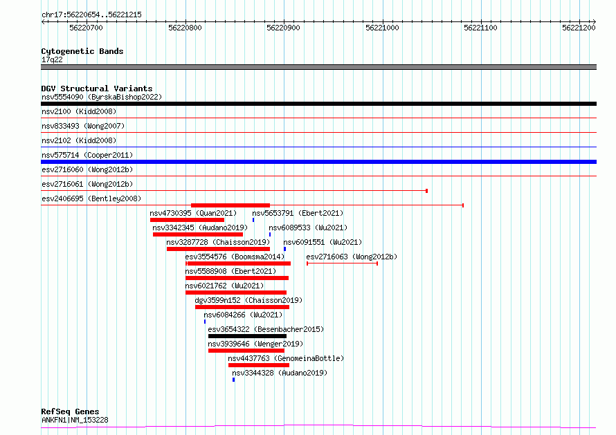 Variant DetailsVariant: essv6743743| Internal ID | 9999284 | | Landmark | | | Location Information | | | Cytoband | 17q22 | | Allele length | | Assembly | Allele length | | hg38 | 562 | | hg19 | 562 |