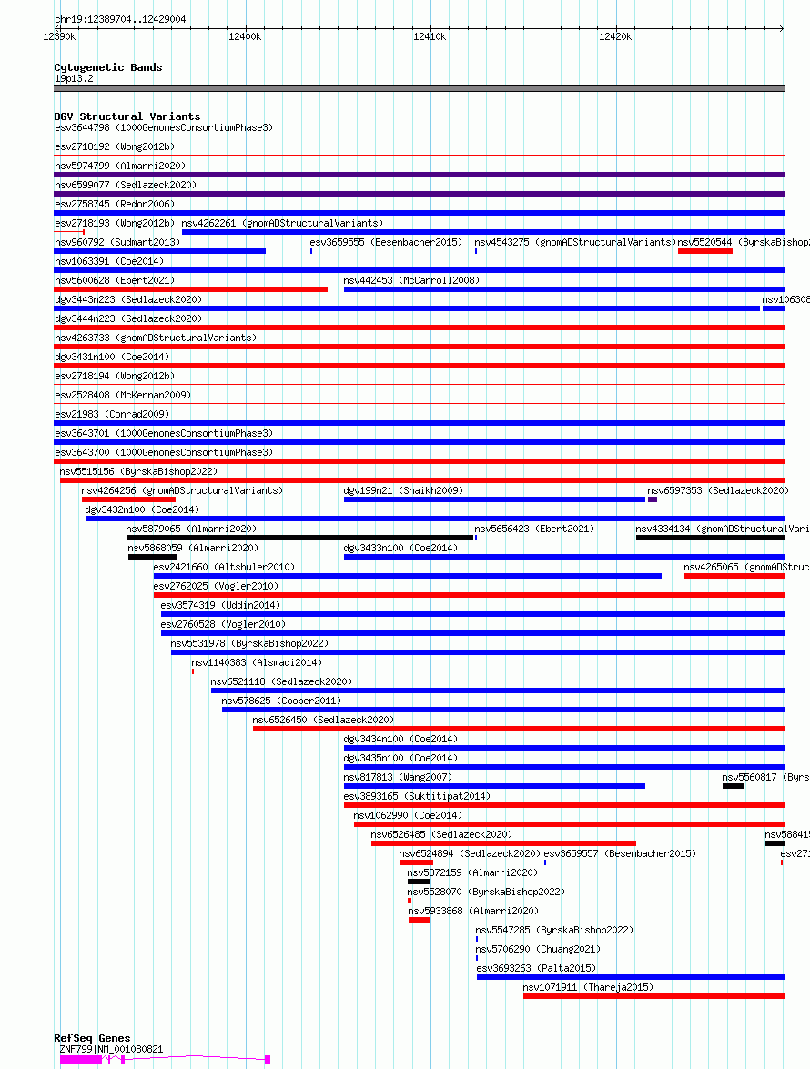 Variant DetailsVariant: essv6745809| Internal ID | 9999469 | | Landmark | | | Location Information | | | Cytoband | 19p13.2 | | Allele length | | Assembly | Allele length | | hg38 | 39301 | | hg19 | 39301 |