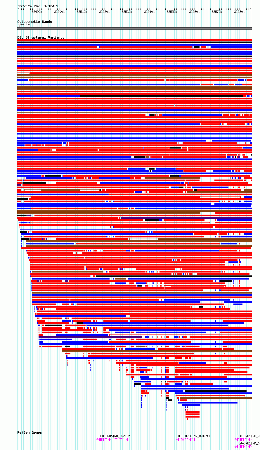 Variant DetailsVariant: essv6745918| Internal ID | 10155537 | | Landmark | | | Location Information | | | Cytoband | 6p21.32 | | Allele length | | Assembly | Allele length | | hg38 | 103838 | | hg19 | 103838 |