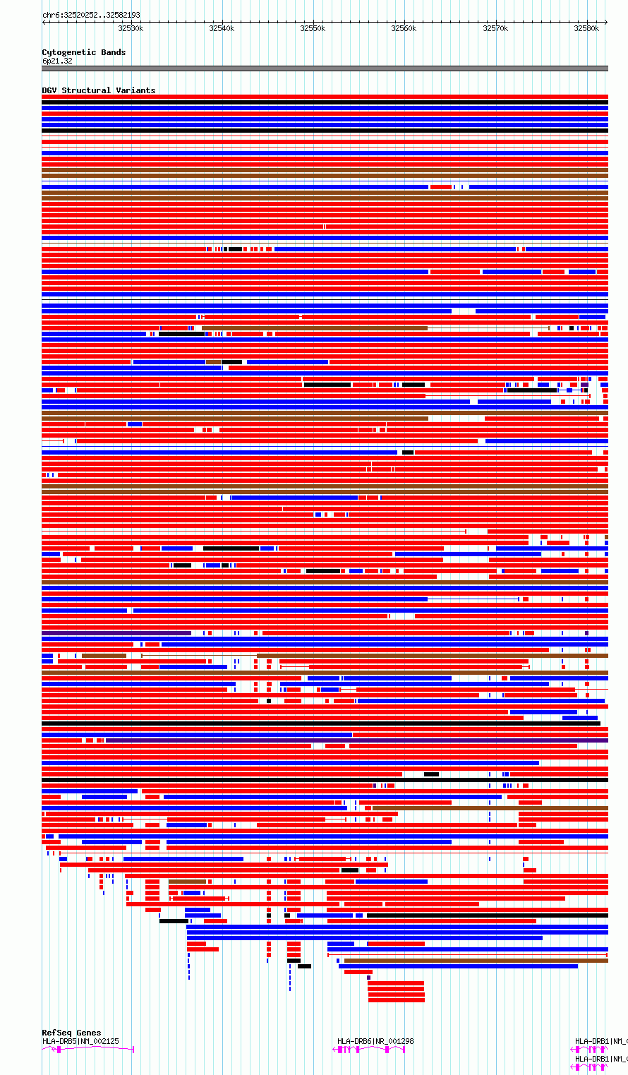 Variant DetailsVariant: essv6745926| Internal ID | 10155530 | | Landmark | | | Location Information | | | Cytoband | 6p21.32 | | Allele length | | Assembly | Allele length | | hg38 | 61942 | | hg19 | 61942 |