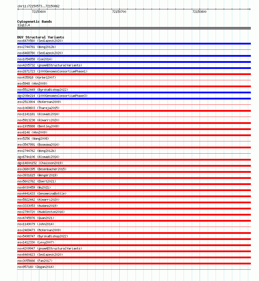 Variant DetailsVariant: essv6746764| Internal ID | 10154776 | | Landmark | | | Location Information | | | Cytoband | 11q13.4 | | Allele length | | Assembly | Allele length | | hg38 | 290 | | hg19 | 290 |