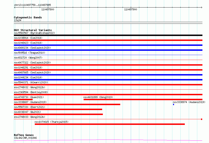 | | Variant Type | CNV deletion | | Copy Number | | | Allele State | | | Allele Origin | | | Probe Count | | | Validation Flag | | | Merged Status | S | | Merged Variants | esv2748033, esv2748032 | | Supporting Variants | | | Samples | SSM055 | | Known Genes | COL4A2 | | Method | Sequencing | | Analysis | Breakdancer:4 times standard deviation,VariationHunter:4 times standard deviation and at least 3 supportting reads | | Platform | Illumina HiSeq 2000 | | Comments | | | Reference | Wong_et_al_2012b | | Pubmed ID | 23290073 | | Accession Number(s) | essv6747006