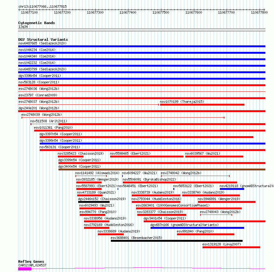 Variant DetailsVariant: essv6747007| Internal ID | 10154557 | | Landmark | | | Location Information | | | Cytoband | 13q34 | | Allele length | | Assembly | Allele length | | hg38 | 750 | | hg19 | 750 |