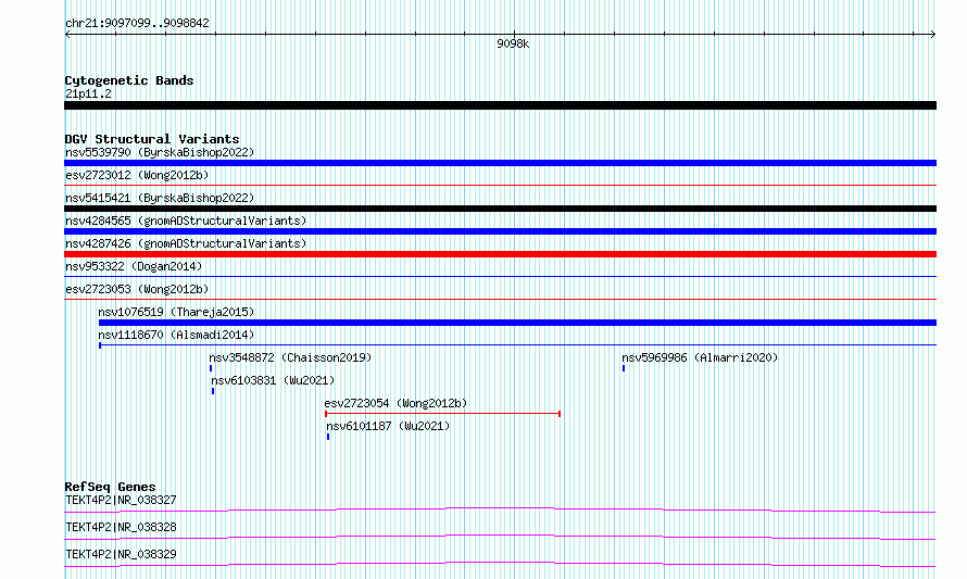 Variant DetailsVariant: essv6747464| Internal ID | 9999618 | | Landmark | | | Location Information | | | Cytoband | 21p11.2 | | Allele length | | Assembly | Allele length | | hg38 | 1744 | | hg19 | 1744 |
