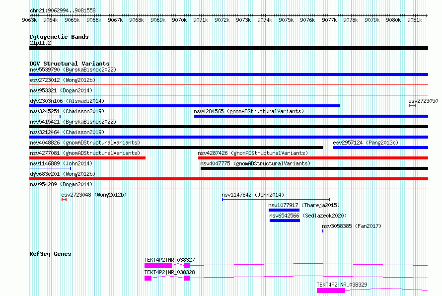 Variant DetailsVariant: essv6747475| Internal ID | 9999619 | | Landmark | | | Location Information | | | Cytoband | 21p11.2 | | Allele length | | Assembly | Allele length | | hg38 | 18565 | | hg19 | 18565 |