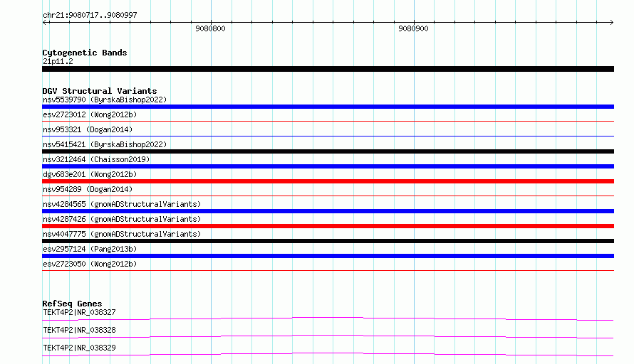 Variant DetailsVariant: essv6747686| Internal ID | 10153947 | | Landmark | | | Location Information | | | Cytoband | 21p11.2 | | Allele length | | Assembly | Allele length | | hg38 | 281 | | hg19 | 281 |