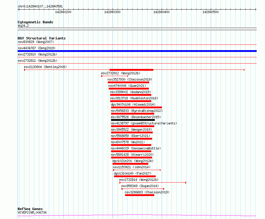 Variant DetailsVariant: essv6748835| Internal ID | 10158546 | | Landmark | | | Location Information | | | Cytoband | 6q24.2 | | Allele length | | Assembly | Allele length | | hg38 | 485 | | hg19 | 485 |