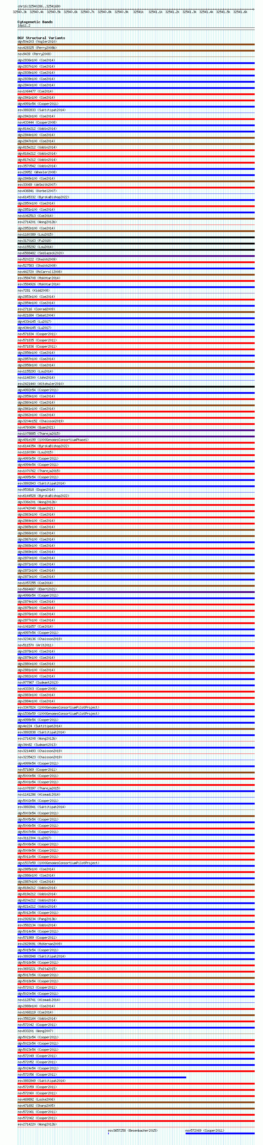 Variant DetailsVariant: essv6750029| Internal ID | 10157847 | | Landmark | | | Location Information | | | Cytoband | 16p11.2 | | Allele length | | Assembly | Allele length | | hg38 | 1395 | | hg19 | 1395 |