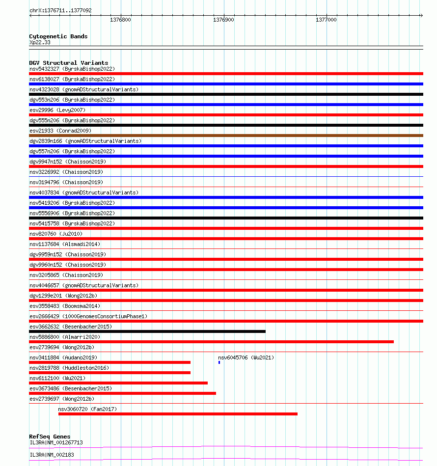 Variant DetailsVariant: essv6751945| Internal ID | 10159861 | | Landmark | | | Location Information | | | Cytoband | Xp22.33 | | Allele length | | Assembly | Allele length | | hg38 | 382 | | hg19 | 382 |