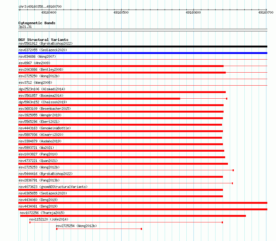 Variant DetailsVariant: essv6753675| Internal ID | 10001901 | | Landmark | | | Location Information | | | Cytoband | 3p21.31 | | Allele length | | Assembly | Allele length | | hg38 | 343 | | hg19 | 343 |