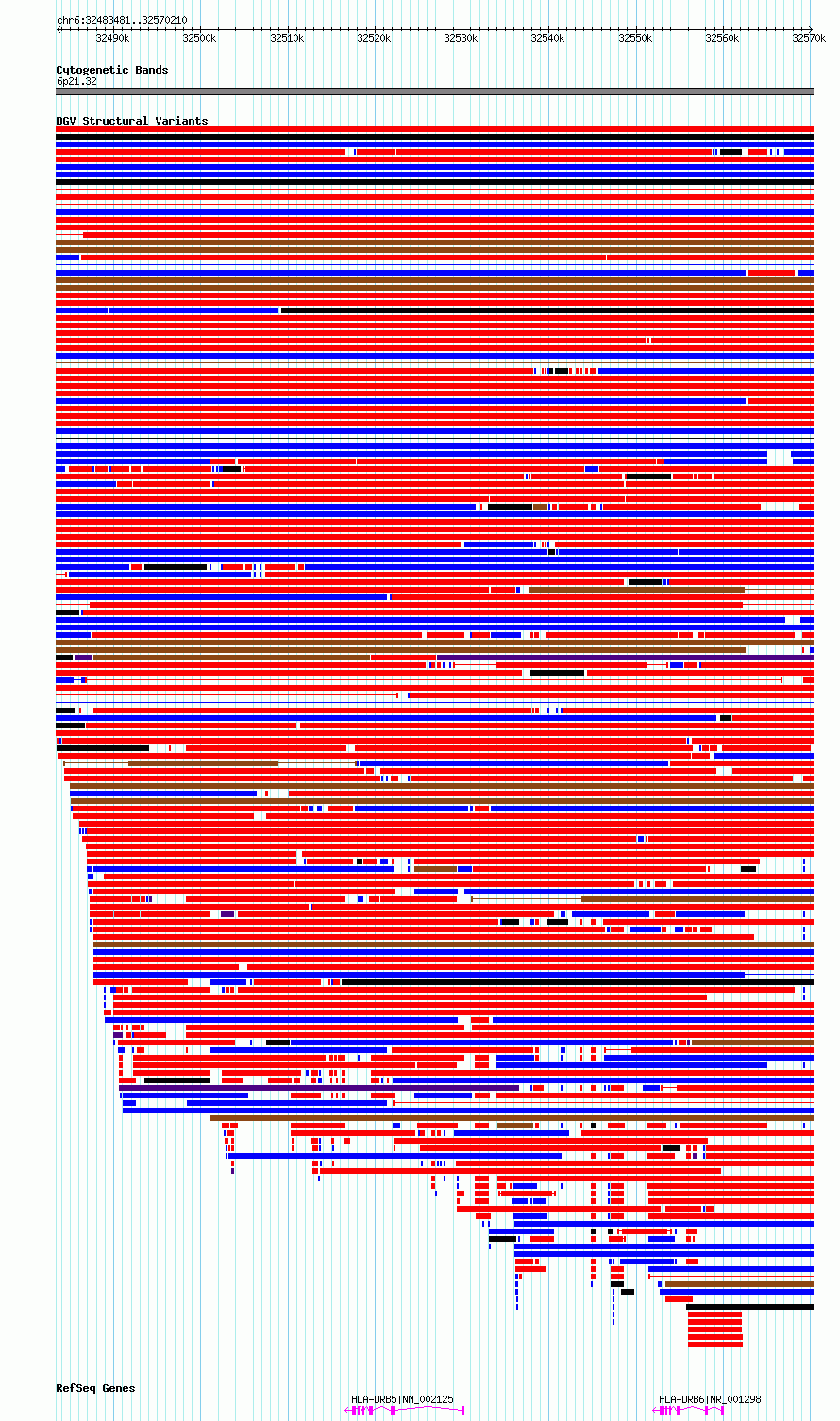 Variant DetailsVariant: essv6754489| Internal ID | 10163698 | | Landmark | | | Location Information | | | Cytoband | 6p21.32 | | Allele length | | Assembly | Allele length | | hg38 | 86730 | | hg19 | 86730 |