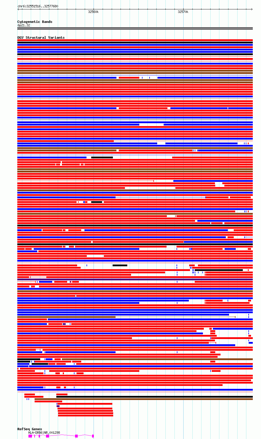 Variant DetailsVariant: essv6754525| Internal ID | 10163765 | | Landmark | | | Location Information | | | Cytoband | 6p21.32 | | Allele length | | Assembly | Allele length | | hg38 | 26165 | | hg19 | 26165 |