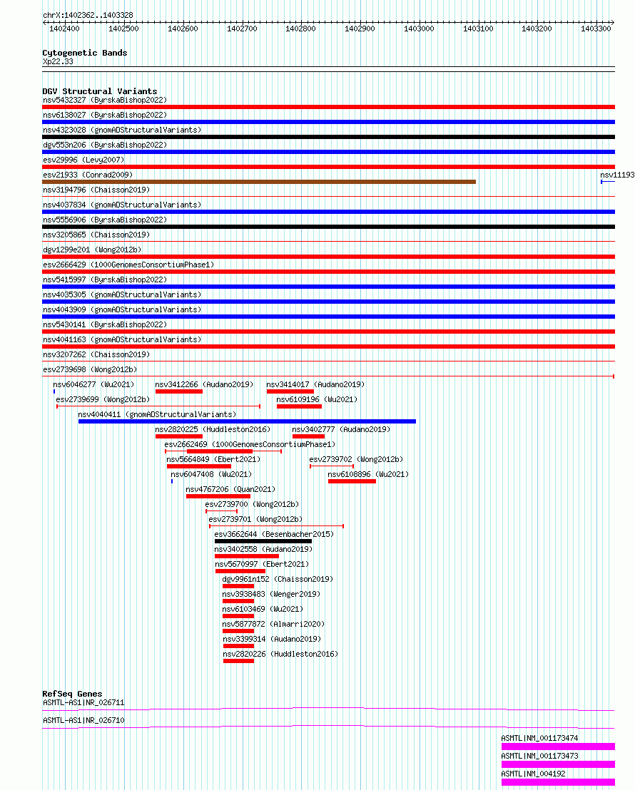 Variant DetailsVariant: essv6754904| Internal ID | 10161741 | | Landmark | | | Location Information | | | Cytoband | Xp22.33 | | Allele length | | Assembly | Allele length | | hg38 | 967 | | hg19 | 967 |