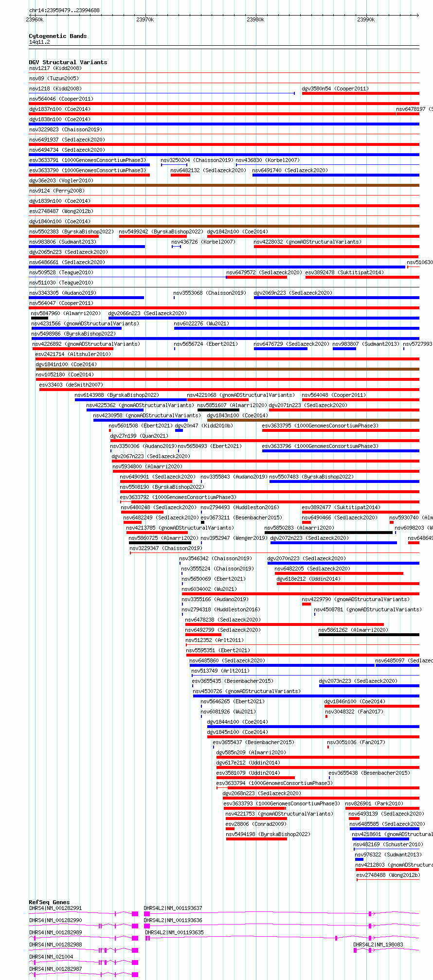 Variant DetailsVariant: essv6758397| Internal ID | 10165052 | | Landmark | | | Location Information | | | Cytoband | 14q11.2 | | Allele length | | Assembly | Allele length | | hg38 | 35210 | | hg19 | 35210 |