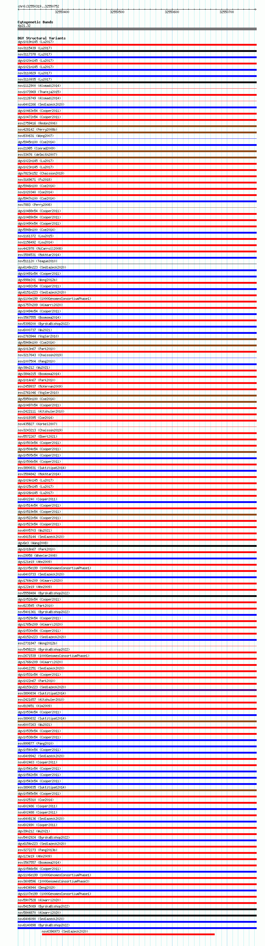Variant DetailsVariant: essv6760002| Internal ID | 10167283 | | Landmark | | | Location Information | | | Cytoband | 6p21.32 | | Allele length | | Assembly | Allele length | | hg38 | 434 | | hg19 | 434 |