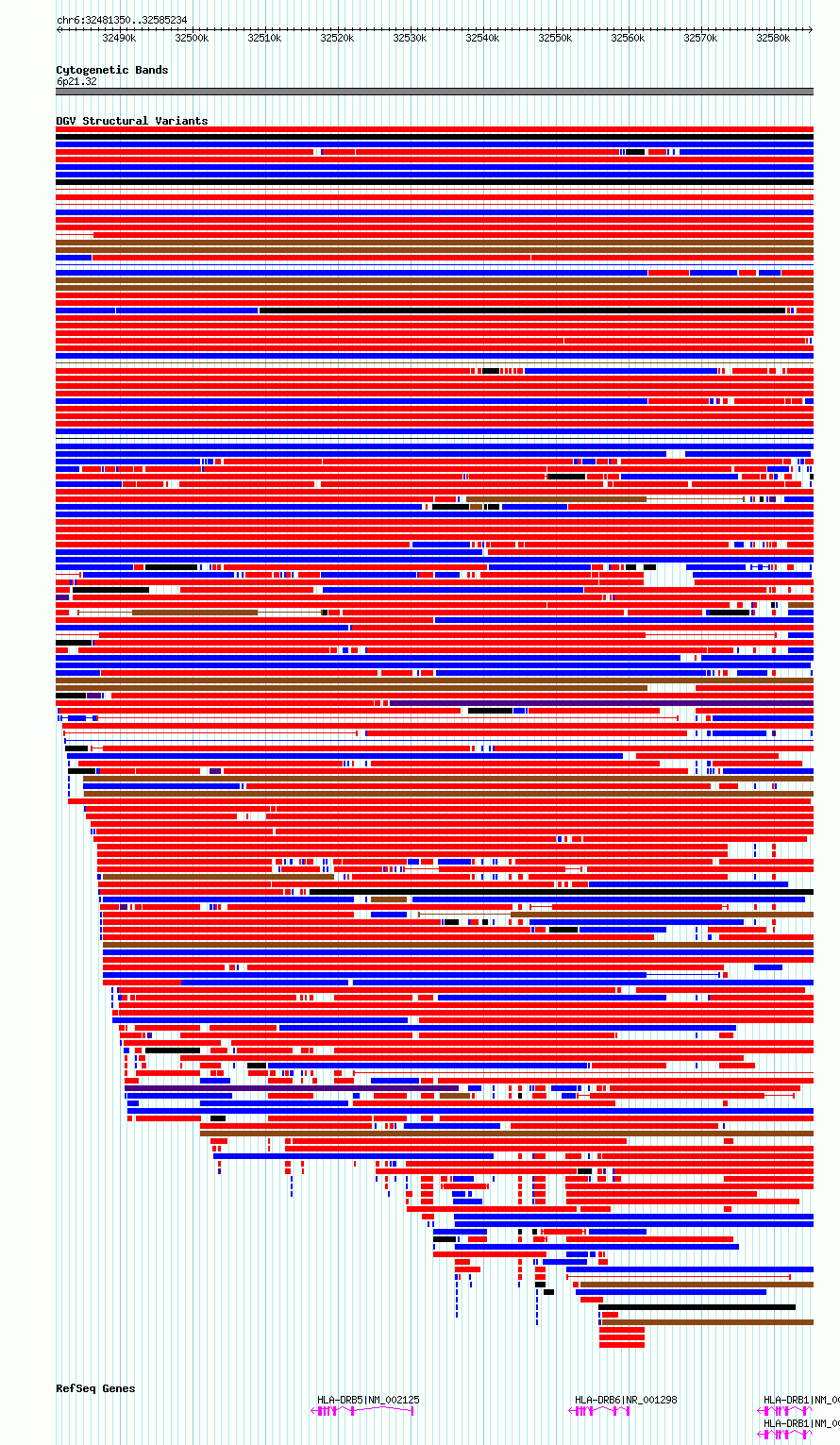 | | Variant Type | CNV deletion | | Copy Number | | | Allele State | | | Allele Origin | | | Probe Count | | | Validation Flag | | | Merged Status | S | | Merged Variants | esv2731844, esv2731839, esv2731842, esv2731835, esv2731837 | | Supporting Variants | | | Samples | SSM061 | | Known Genes | HLA-DRB1, HLA-DRB5, HLA-DRB6 | | Method | Sequencing | | Analysis | Breakdancer:4 times standard deviation,VariationHunter:4 times standard deviation and at least 3 supportting reads | | Platform | Illumina HiSeq 2000 | | Comments | | | Reference | Wong_et_al_2012b | | Pubmed ID | 23290073 | | Accession Number(s) | essv6760011