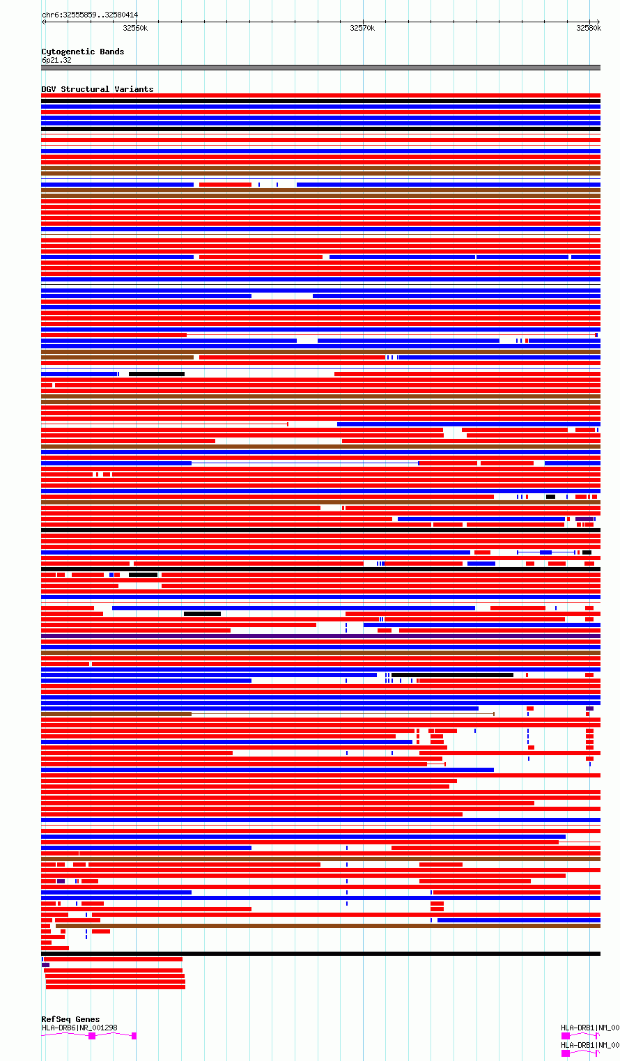 | | Variant Type | CNV deletion | | Copy Number | | | Allele State | | | Allele Origin | | | Probe Count | | | Validation Flag | | | Merged Status | S | | Merged Variants | esv2731844, esv2731846, esv2731848, esv2731839, esv2731842, esv2731847, esv2731835, esv2731837 | | Supporting Variants | | | Samples | SSM008 | | Known Genes | HLA-DRB1, HLA-DRB6 | | Method | Sequencing | | Analysis | Breakdancer:4 times standard deviation,VariationHunter:4 times standard deviation and at least 3 supportting reads | | Platform | Illumina HiSeq 2000 | | Comments | | | Reference | Wong_et_al_2012b | | Pubmed ID | 23290073 | | Accession Number(s) | essv6760664