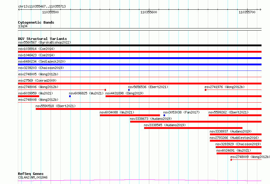 | | Variant Type | CNV deletion | | Copy Number | | | Allele State | | | Allele Origin | | | Probe Count | | | Validation Flag | | | Merged Status | S | | Merged Variants | esv2748008, esv2748005 | | Supporting Variants | | | Samples | SSM061 | | Known Genes | COL4A2 | | Method | Sequencing | | Analysis | Breakdancer:4 times standard deviation,VariationHunter:4 times standard deviation and at least 3 supportting reads | | Platform | Illumina HiSeq 2000 | | Comments | | | Reference | Wong_et_al_2012b | | Pubmed ID | 23290073 | | Accession Number(s) | essv6761123
