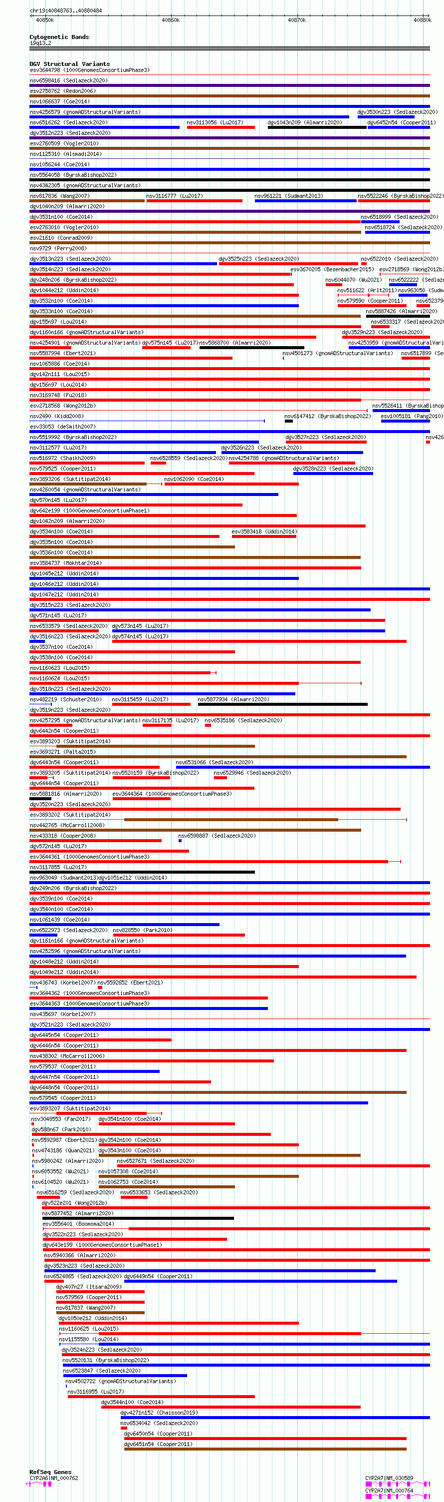 Variant DetailsVariant: essv6761678| Internal ID | 10168792 | | Landmark | | | Location Information | | | Cytoband | 19q13.2 | | Allele length | | Assembly | Allele length | | hg38 | 31722 | | hg19 | 31722 |