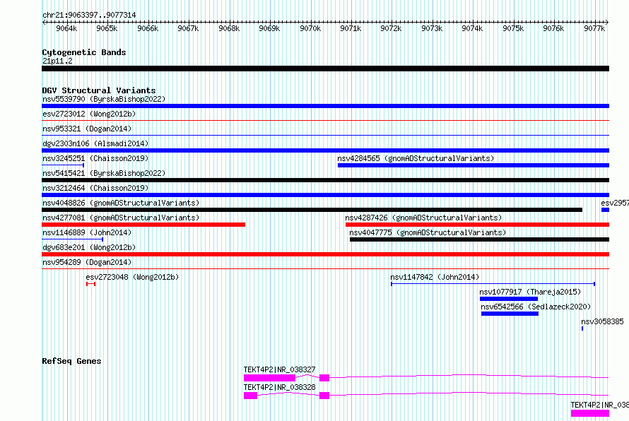 Variant DetailsVariant: essv6761777| Internal ID | 10168881 | | Landmark | | | Location Information | | | Cytoband | 21p11.2 | | Allele length | | Assembly | Allele length | | hg38 | 13918 | | hg19 | 13918 |