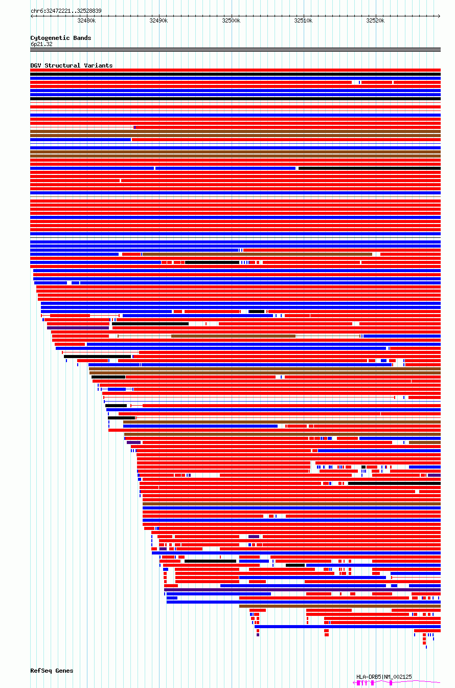 Variant DetailsVariant: essv6762611| Internal ID | 10171049 | | Landmark | | | Location Information | | | Cytoband | 6p21.32 | | Allele length | | Assembly | Allele length | | hg38 | 56619 | | hg19 | 56619 |