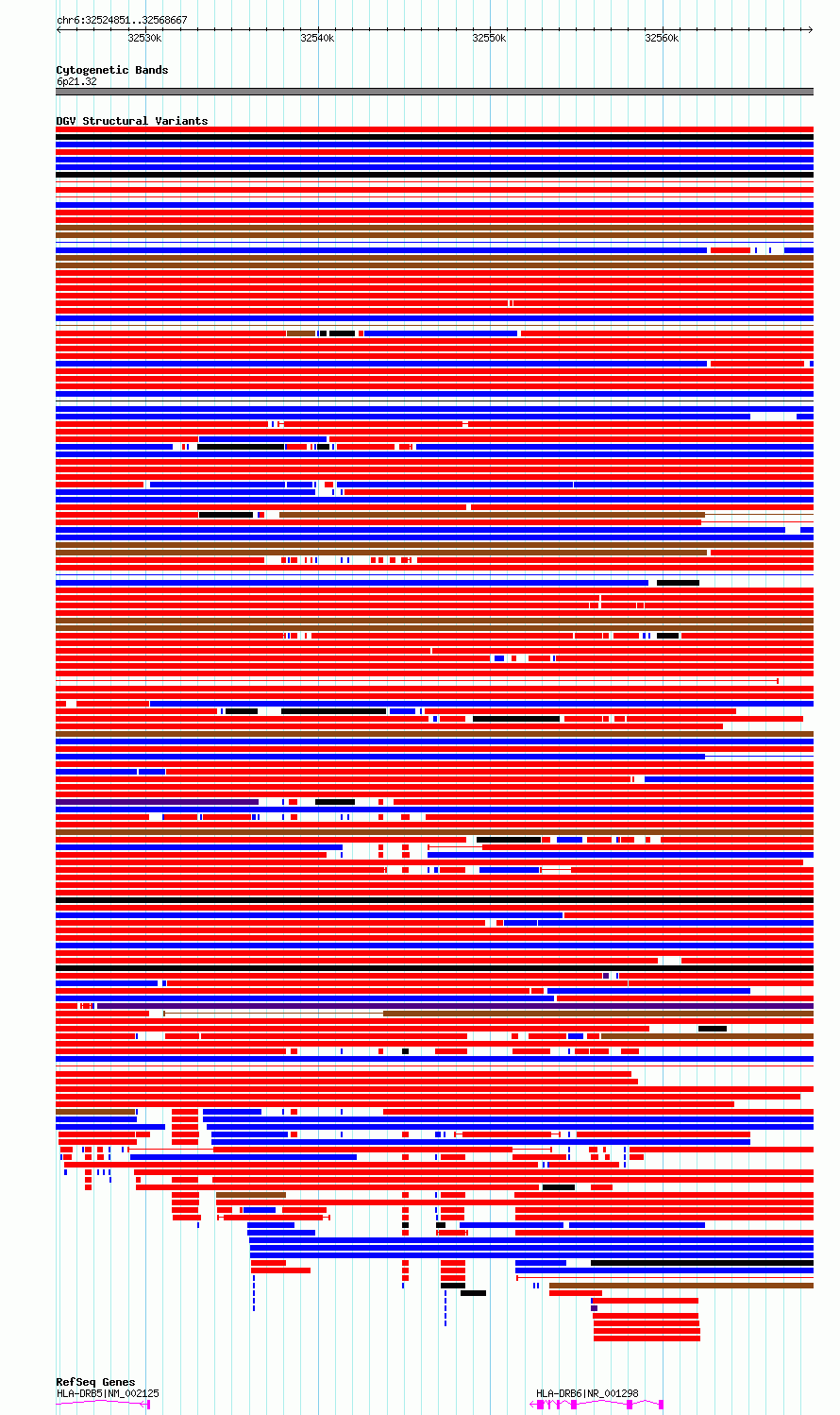 Variant DetailsVariant: essv6762630| Internal ID | 10171067 | | Landmark | | | Location Information | | | Cytoband | 6p21.32 | | Allele length | | Assembly | Allele length | | hg38 | 43817 | | hg19 | 43817 |
