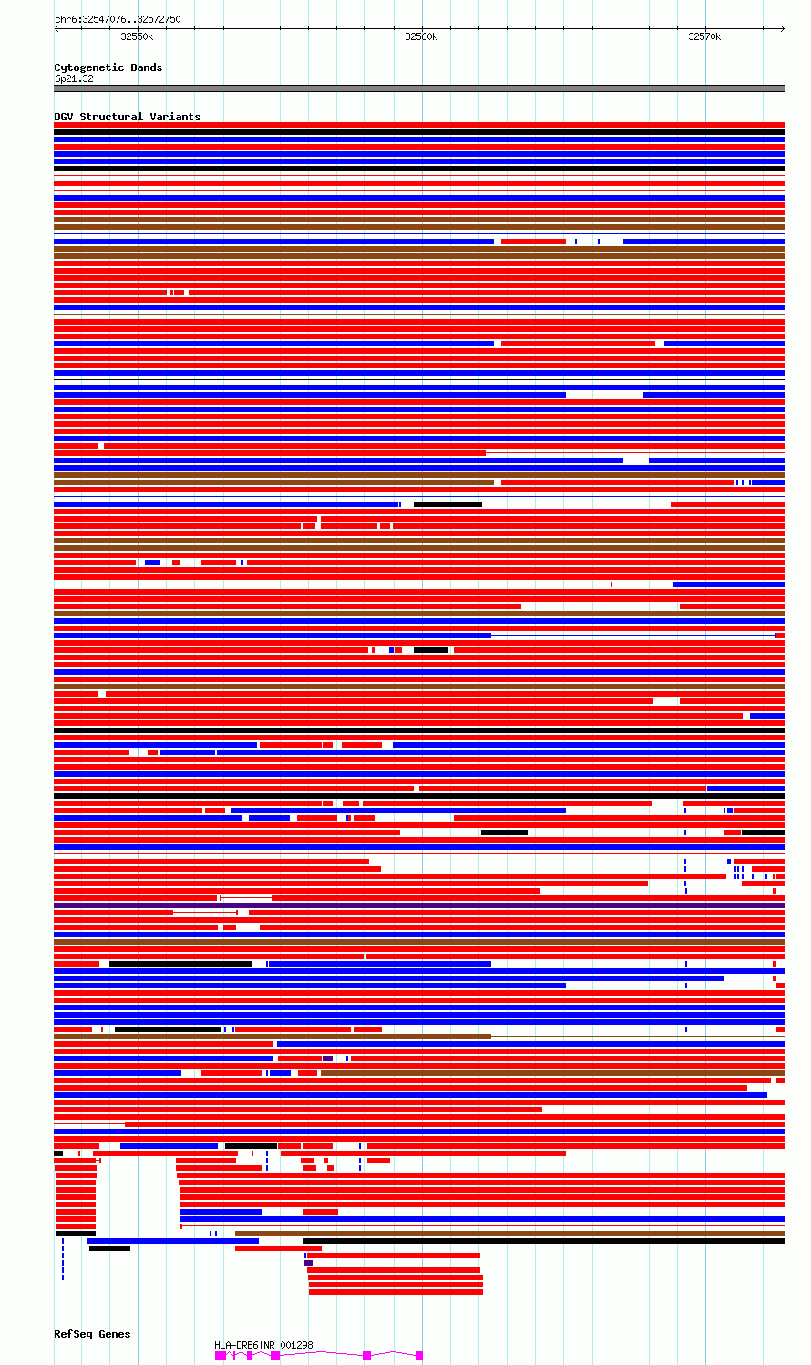Variant DetailsVariant: essv6764989| Internal ID | 10171973 | | Landmark | | | Location Information | | | Cytoband | 6p21.32 | | Allele length | | Assembly | Allele length | | hg38 | 25675 | | hg19 | 25675 |