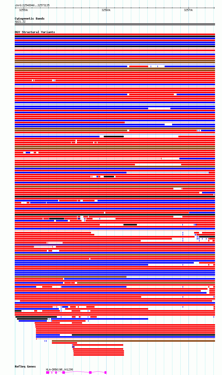 Variant DetailsVariant: essv6764990| Internal ID | 10171974 | | Landmark | | | Location Information | | | Cytoband | 6p21.32 | | Allele length | | Assembly | Allele length | | hg38 | 24190 | | hg19 | 24190 |