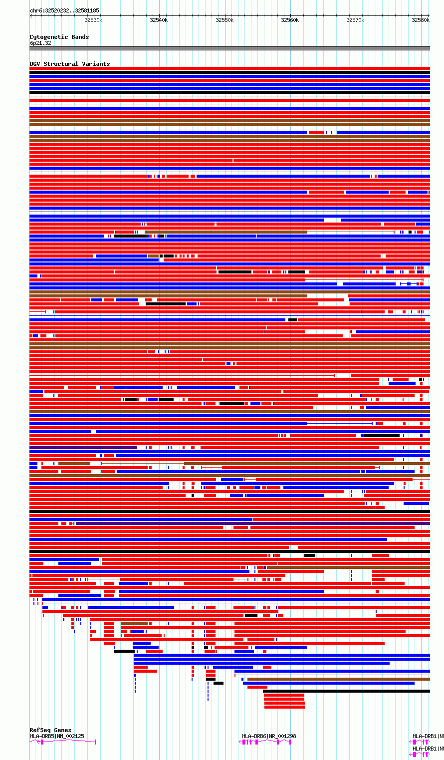 Variant DetailsVariant: essv6764995| Internal ID | 10171979 | | Landmark | | | Location Information | | | Cytoband | 6p21.32 | | Allele length | | Assembly | Allele length | | hg38 | 60954 | | hg19 | 60954 |
