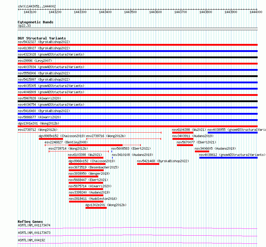 Variant DetailsVariant: essv6765290| Internal ID | 10172242 | | Landmark | | | Location Information | | | Cytoband | Xp22.33 | | Allele length | | Assembly | Allele length | | hg38 | 952 | | hg19 | 952 |