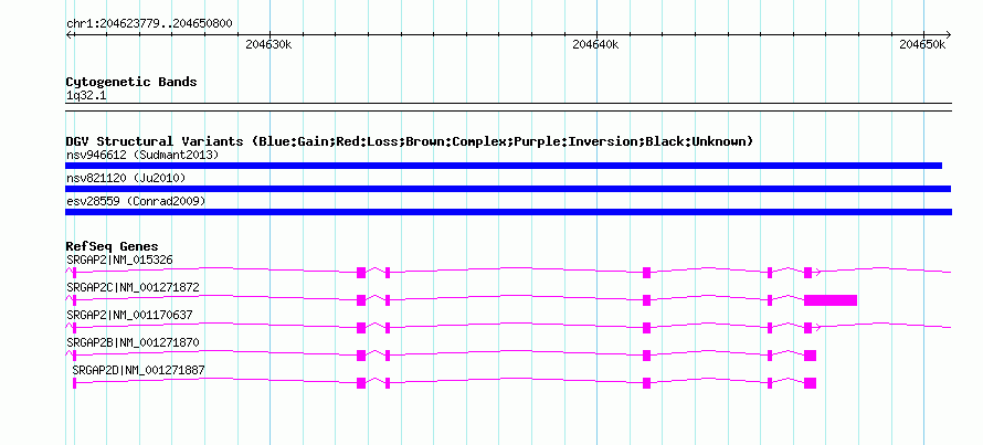 | Known Genes | SRGAP2, SRGAP2B, SRGAP2C, SRGAP2D |