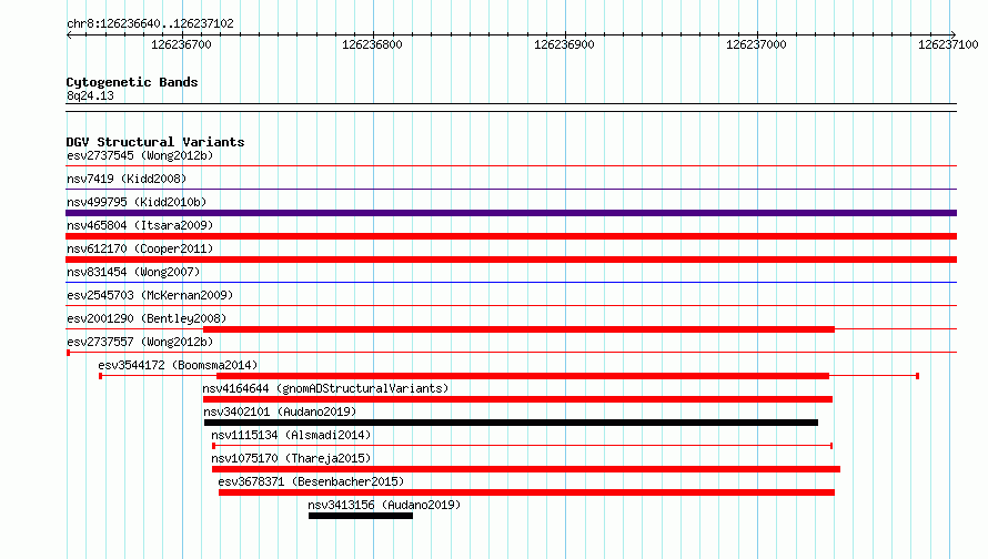 Variant DetailsVariant: essv6766965| Internal ID | 9654489 | | Landmark | | | Location Information | | | Cytoband | 8q24.13 | | Allele length | | Assembly | Allele length | | hg38 | 463 | | hg19 | 463 |