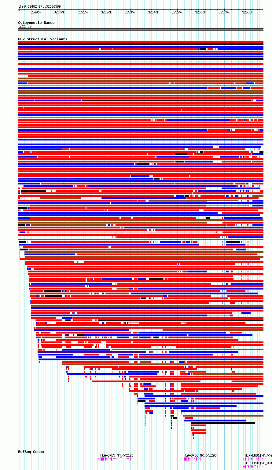 Variant DetailsVariant: essv6767498| Internal ID | 10175089 | | Landmark | | | Location Information | | | Cytoband | 6p21.32 | | Allele length | | Assembly | Allele length | | hg38 | 103943 | | hg19 | 103943 |