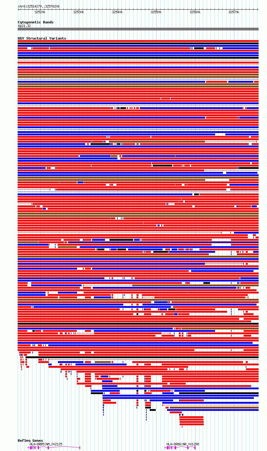 Variant DetailsVariant: essv6767518| Internal ID | 10175071 | | Landmark | | | Location Information | | | Cytoband | 6p21.32 | | Allele length | | Assembly | Allele length | | hg38 | 61928 | | hg19 | 61928 |