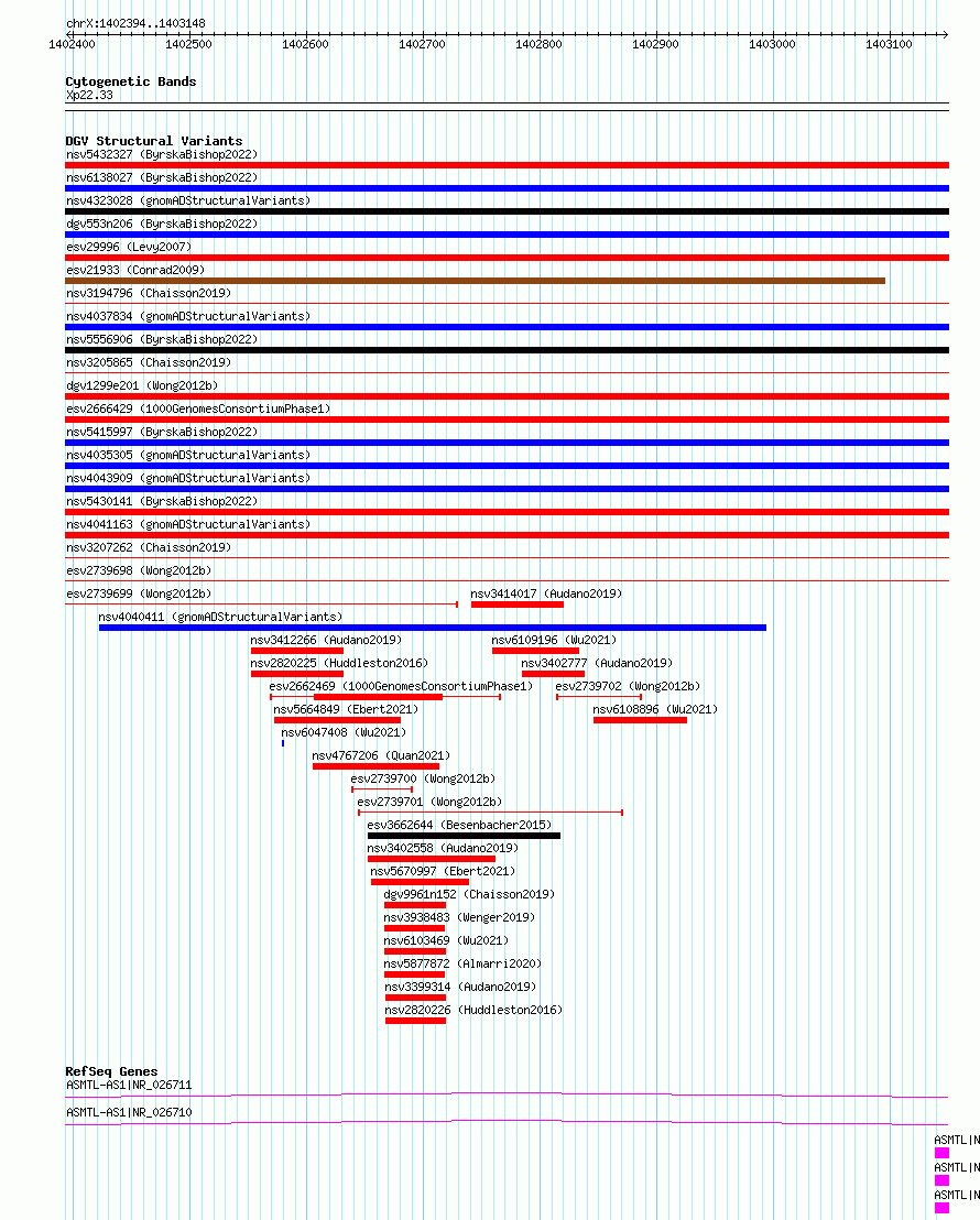Variant DetailsVariant: essv6771281| Internal ID | 10177635 | | Landmark | | | Location Information | | | Cytoband | Xp22.33 | | Allele length | | Assembly | Allele length | | hg38 | 755 | | hg19 | 755 |