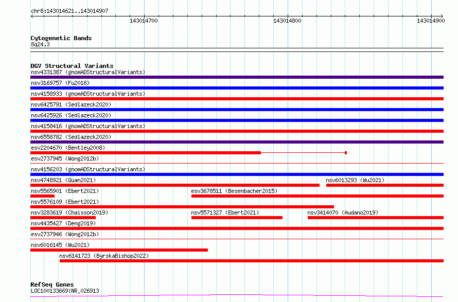 Variant DetailsVariant: essv6775218| Internal ID | 10181179 | | Landmark | | | Location Information | | | Cytoband | 8q24.3 | | Allele length | | Assembly | Allele length | | hg38 | 287 | | hg19 | 287 |