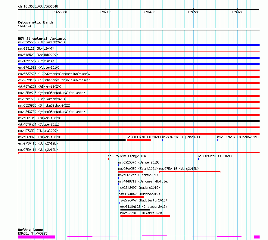 Variant DetailsVariant: essv6776389| Internal ID | 10000101 | | Landmark | | | Location Information | | | Cytoband | 16p13.3 | | Allele length | | Assembly | Allele length | | hg38 | 546 | | hg19 | 546 |