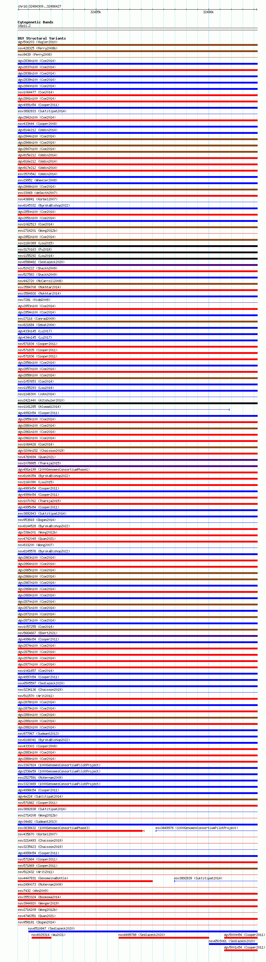 Variant DetailsVariant: essv6776677| Internal ID | 10000072 | | Landmark | | | Location Information | | | Cytoband | 16p11.2 | | Allele length | | Assembly | Allele length | | hg38 | 2119 | | hg19 | 2119 |