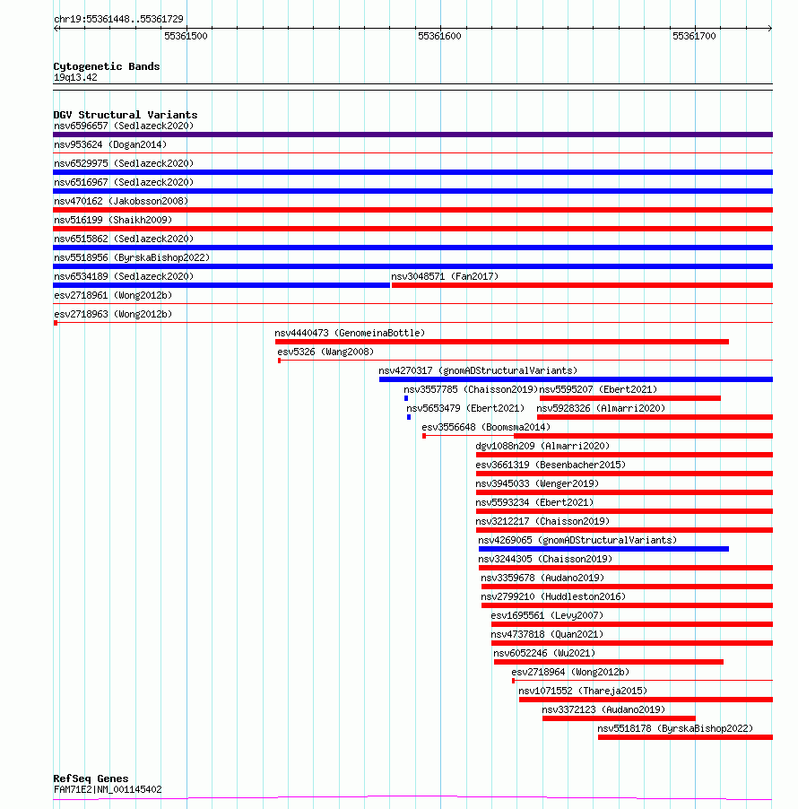 Variant DetailsVariant: essv6776717| Internal ID | 10182525 | | Landmark | | | Location Information | | | Cytoband | 19q13.42 | | Allele length | | Assembly | Allele length | | hg38 | 282 | | hg19 | 282 |